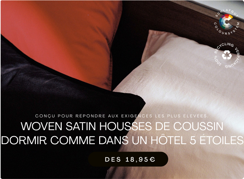 Pour les oreillers, les tissus naturels et doux pour la peau comme le coton sont particulièrement adaptés. Ils protègent également les cheveux, qui souffrent sur un matériau rêche. C'est pourquoi, chez Schlafgut, nous misons sur des tissus et des couleurs hypoallergéniques pour nos belles taies d'oreiller. Enfin, la qualité joue un rôle important : une taie d'oreiller de haute qualité se distingue par une grande longévité. Des propriétés d'entretien facile et des couleurs qui restent vives longtemps sont indispensables, surtout pour les taies d'oreiller.