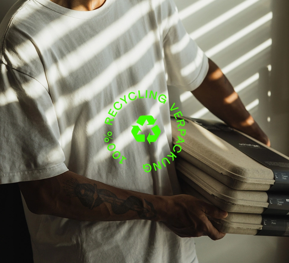 Para nosotros, la sostenibilidad no termina en el producto: nuestros embalajes siguen el principio de Cero Residuos. Esto significa que renunciamos al plástico innecesario y utilizamos materiales reciclables.